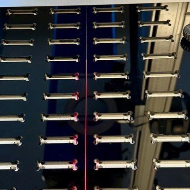 Once the base is aligned you can take the backstop and insert it into the jig. If it does not immediately insert, verify you have the base with the line side up! The two center risers can be installed as well. You can project a laser line down the center and verify everything is aligned.
